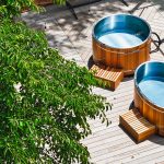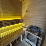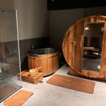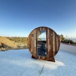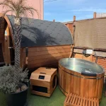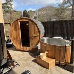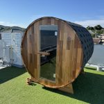 バレルサウナの基本的なスタンダードなサイズ。 庭先などに気軽に設置できる屋外用サウナです。 内部は豊かな木の香りを楽しむことができます。