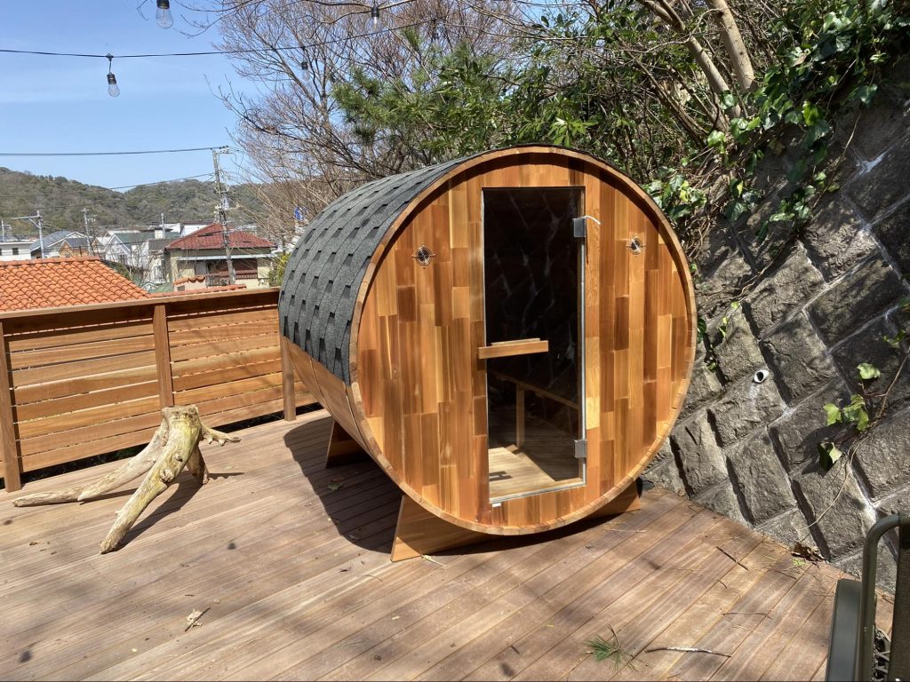庭や屋上に置くバレルサウナは、屋外で外気浴まで含めた動線を作りやすい点がメリットです。kokolo saunaのバレルサウナは「置くだけ」で設置しやすい後付けタイプとして案内されており、戸建の庭先だけでなく、宿泊施設や民泊などでも採用例があるようです。